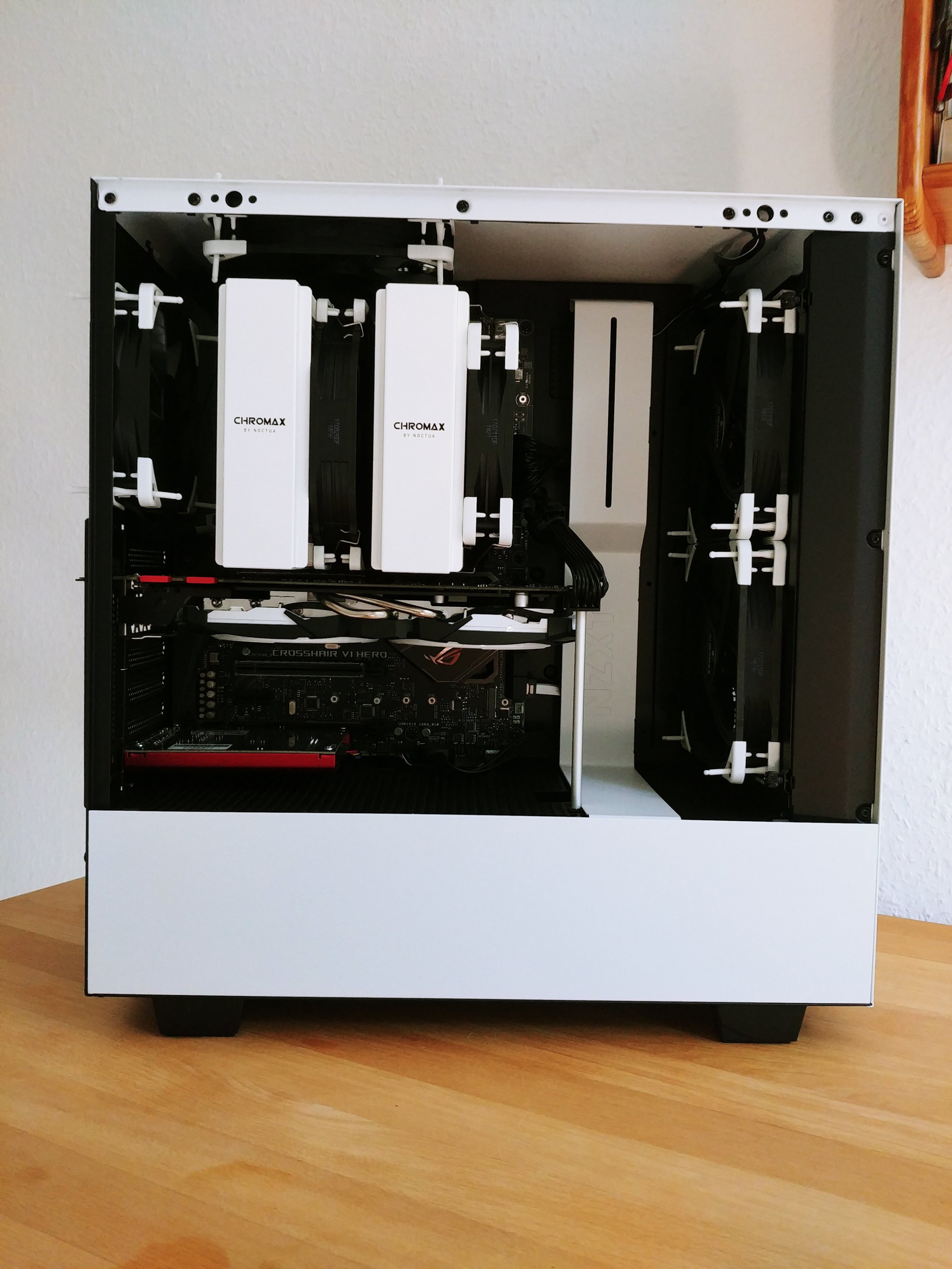 Rein in Windows wird das wohl reichen mit den Noctuas, die Vega ist zwar wärmer als meine 1070 aber die Tempregelung im Gigabyte Mobo ist wohl etwas besser als bei meinem Asus. Hören tue ich so gut wie gar nichts in Windows wirklich nur ein sehr sehr leises säuseln und darauf muss man sich konzentrieren. Thermisch gesehen kann ich nur mit dem Meshify Vergleichen unter Last, in Spielen, ist das Meshify merklich leiser, die Graka ein paar Grad wärmer und die CPU kühler, ebenfalls um ein paar Grad. Im Nzxt ist die GPU kühler die CPU dagegen etwas wärmer, der Chipsatz ist hingegen deutlich wärmer im NZXT vermutlich dank der Kabelschiene. Bei CPU Last ist die Lautstärke relativ vergleichbar, wie gesagt nur etwas geringere Temps im Meshify.