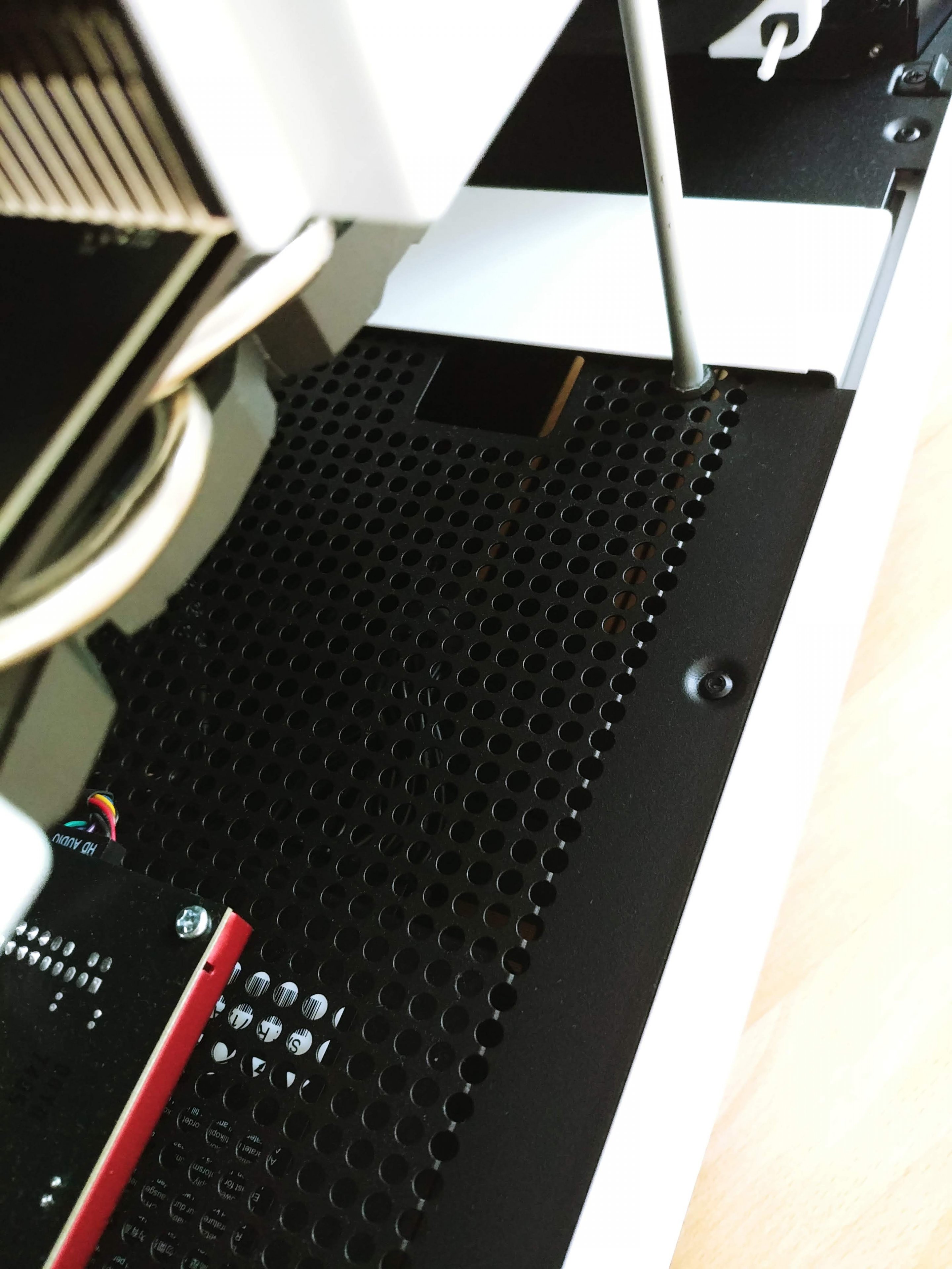 Und der Vollständigkeit halber auch das Fractal ist nicht überragend Konstruiert, schraubt man die Lüfter raus ist um die Schrauben herum der Lack ab am Gehäuse. Die Klettstreifen fangen an sich sichtbar aufzulösen nach 3-4 maliger Benutzung. Gehäuse Boden über dem Netzteil fällt nach hinten merklich ab an den Stanzungen für die Luftlöcher, auch hier Lack geht schnell ab (Netzteilbefestigungs Rahmen, SSD Rahmen etc pp) ist halt nur lackiertes Metall.