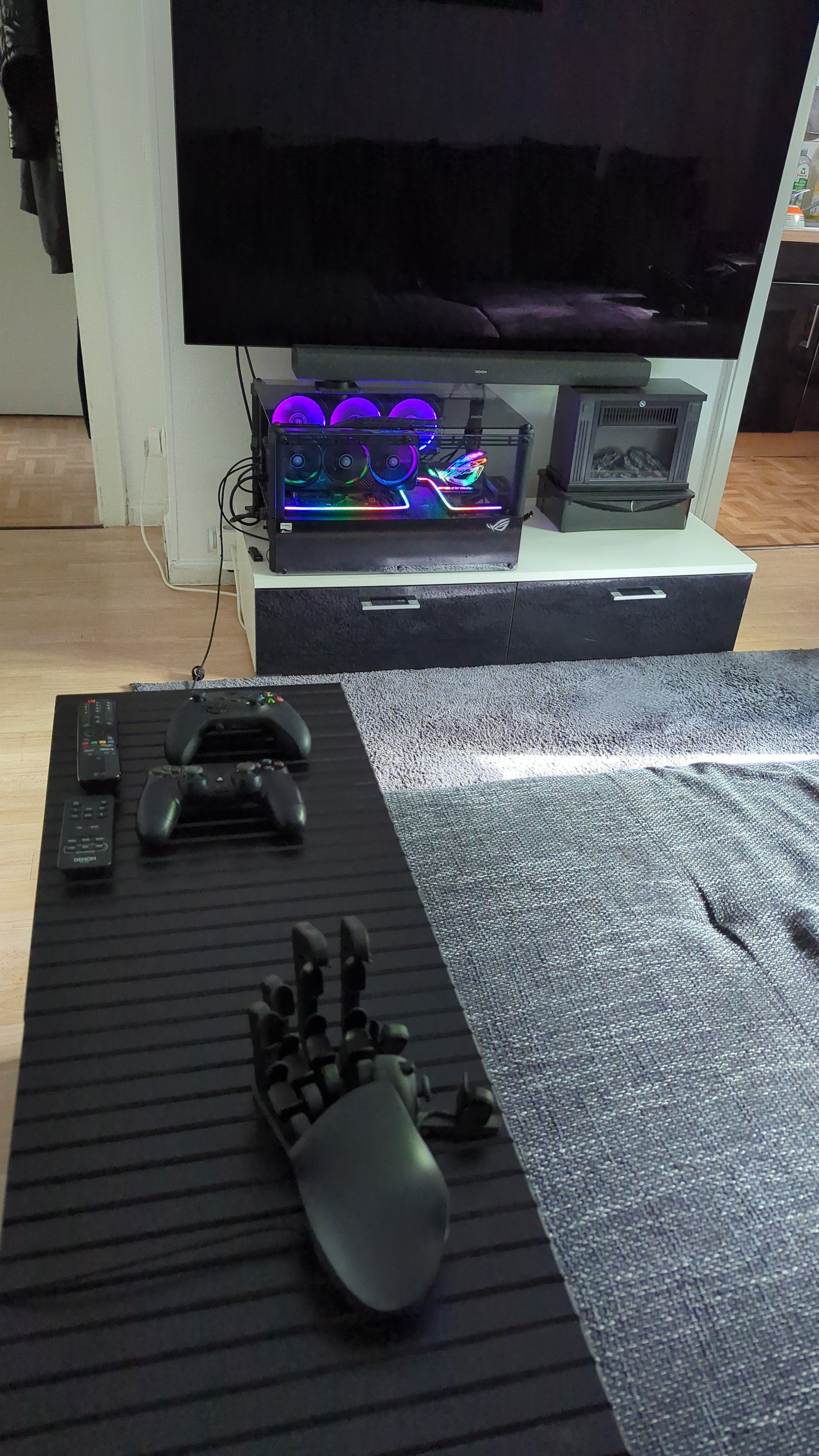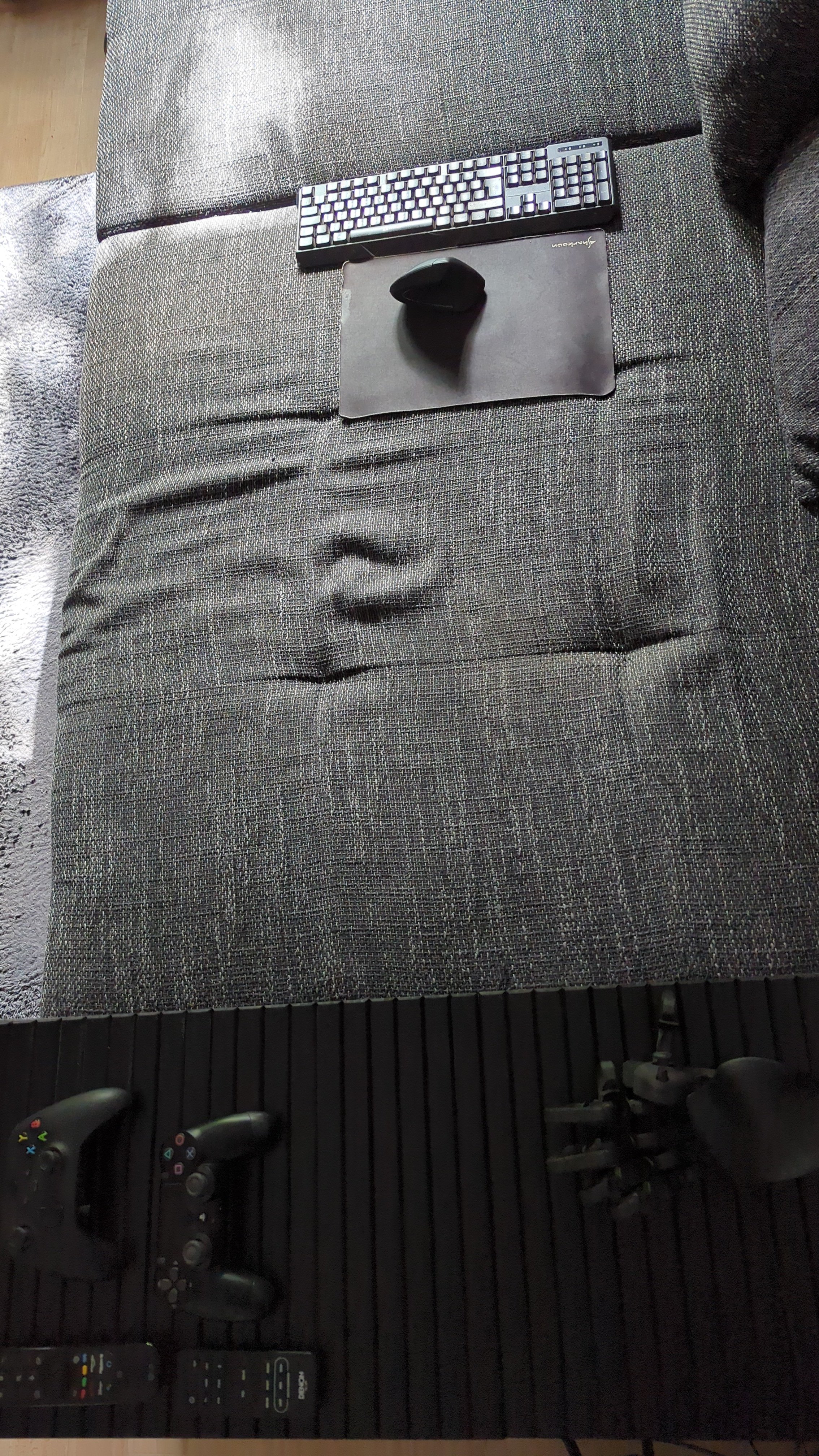 Ach ja, und damit das Zocken von Shootern com Sofa aus auch prima funktioniert habe ich mir ein Azeron Keypad zugekehrt, was auch super funktioniert, wenn es auf der Armlehne des Sofas steht. Eine vertikale Maus ist dann eigentlich schon Pflicht wegen der relativ weit unten liegenden Hand in der halb-liegenden Position auf dem sofa.