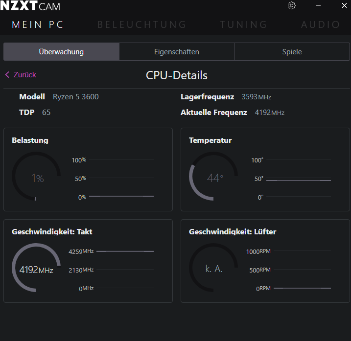 Nun habe ich mir die CAM-Software von nzxt heruntergeladen, allerdings kann ich über die Software nicht die CPU-Lüftergeschwindigkeit auslesen oder gar steuern?
