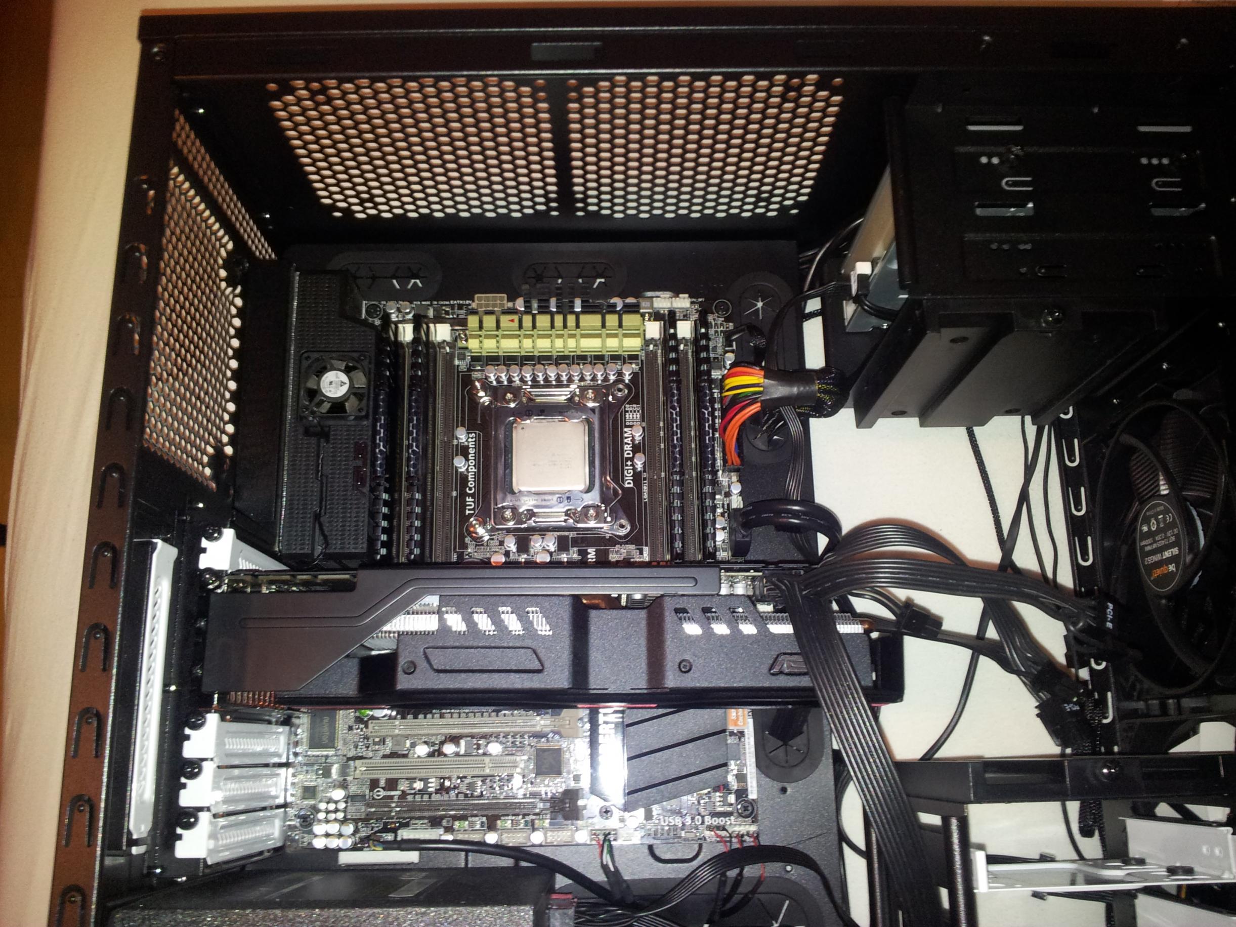 Die Lüfter + Radiator sind anscheinend zu dick. So wie ich das gesehen habe liegt das wirklich am Gehäuse oder evtl. sogar auch am Sabertooth X79 Mainboard.