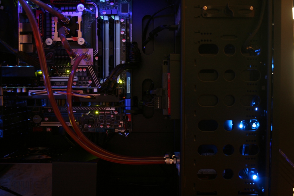 Die Wasserhühlung ist das 360er Set von Aquatuning + einem Northbridge Kühler von Mips.