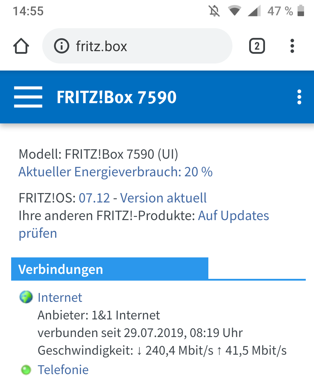 Das sieht ja schon mal nicht schlecht aus dachte ich mir, immerhin habe ich einen Vertrag bis zu 50 Mbit: