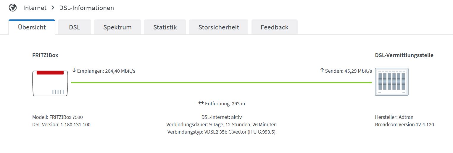 Zeige doch bitte mal die Option -> Internet -> DSL Information -> DSL.John_Wick schrieb:Die 7590 habe ich übrigens selbst gekauft, ist kein Leihgerät.