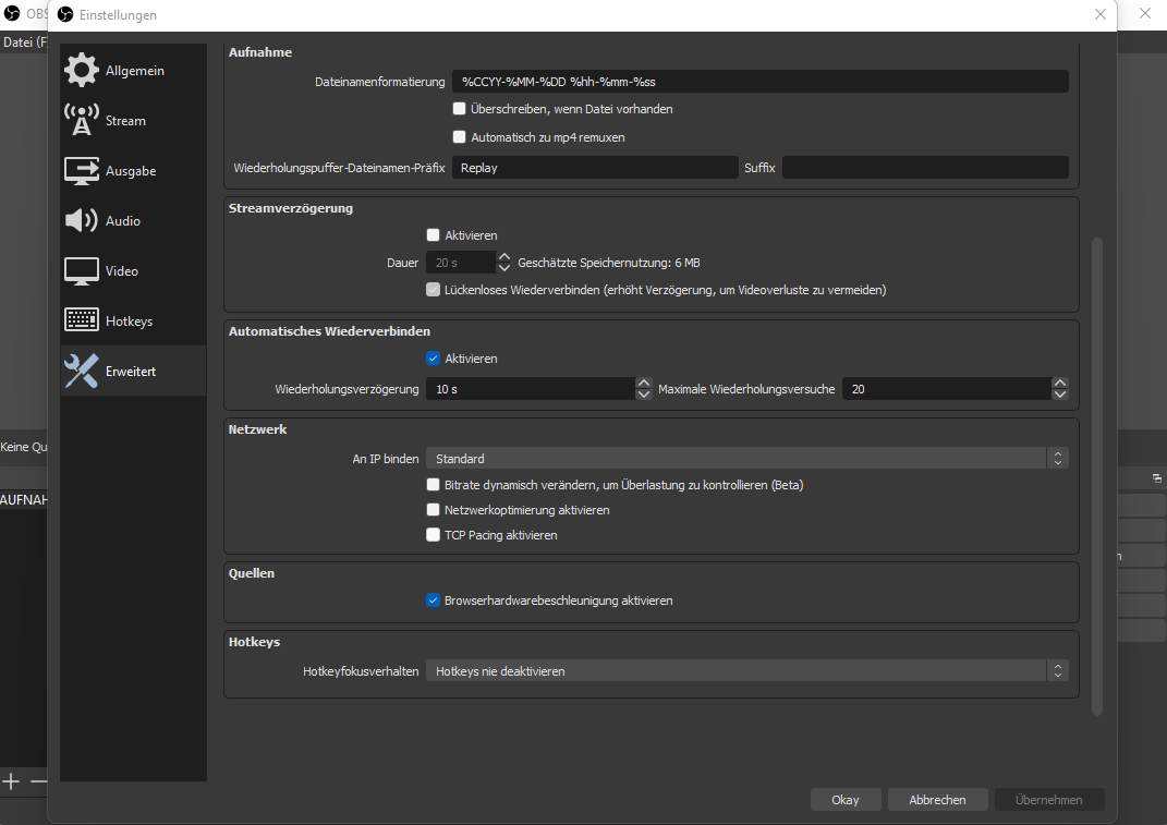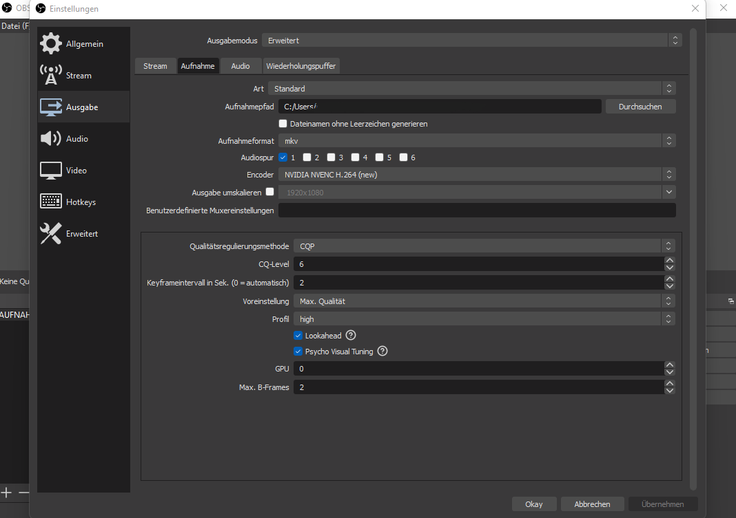 seit 1,5h probiere ich, adäquate Aufnahmeeinstellungen in OBS Studio zu finden. Aufnehmen möchte ich Fortnite-Gameplay. Leider macht sich in Aufnahmen bemerkbar, dass das Spiel bei der Aufnahme an Qualität/Schärfe verliert, was man leider zur Kenntnis nimmt, wenn man sich eine Aufnahme anschaut.