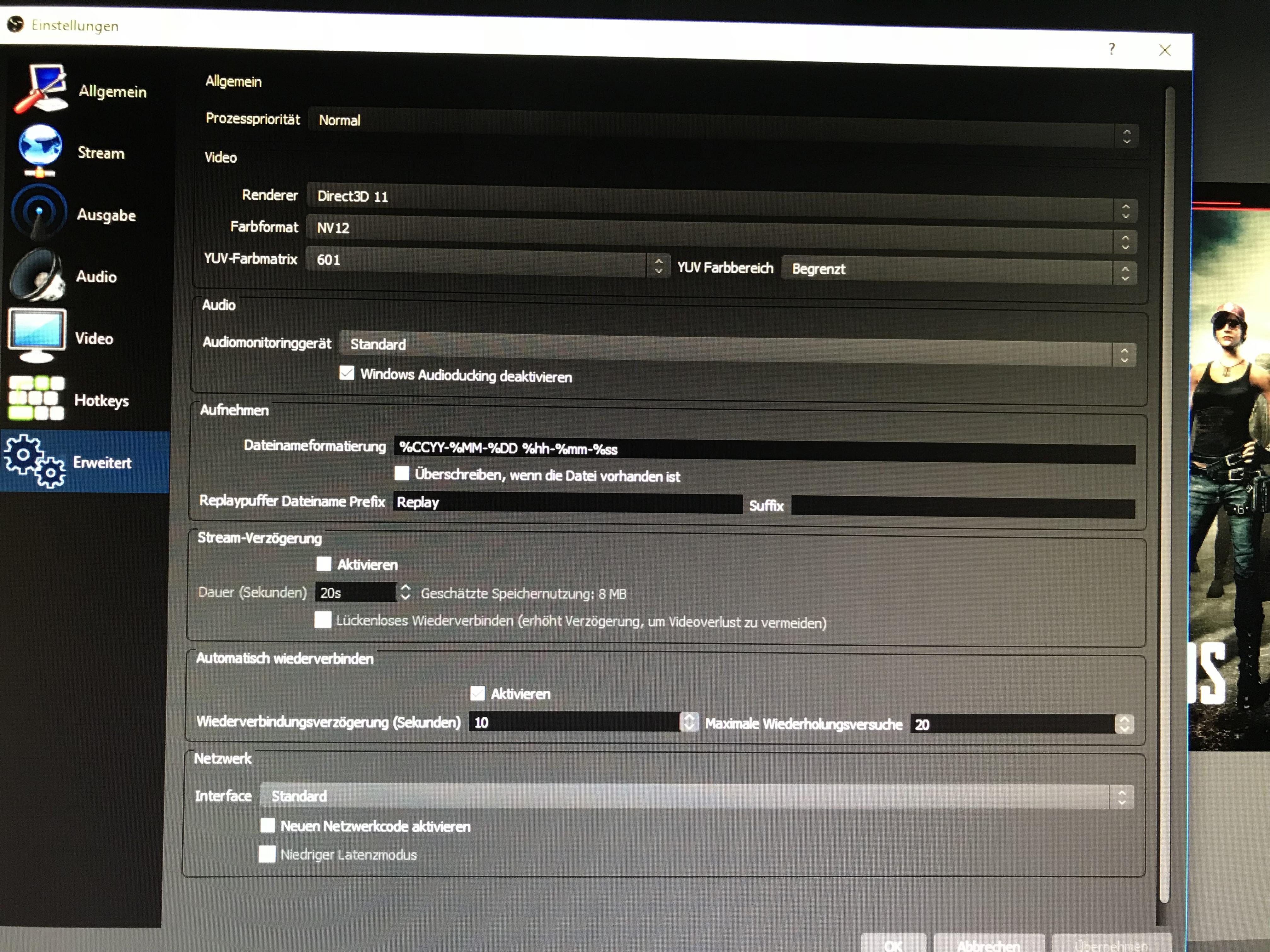 Guten Abend, ich habe ein Problem bei dem ich jetzt keine Ahnung mehr was ich machen kann. Ich habe das Windows 10 Fall Creators Update installiert. Ich habe es auch bereits per ISO neu aufgesetzt. Seit dem kann ich nicht mehr Problemlos mit OBS oder Xsplit Streamen. Die Bilder der OBS Einstellingen habe ich hinzugefügt. Mit genau diesen Einstellungen habe ich vor dem Update ohne Probleme gestreamt.
