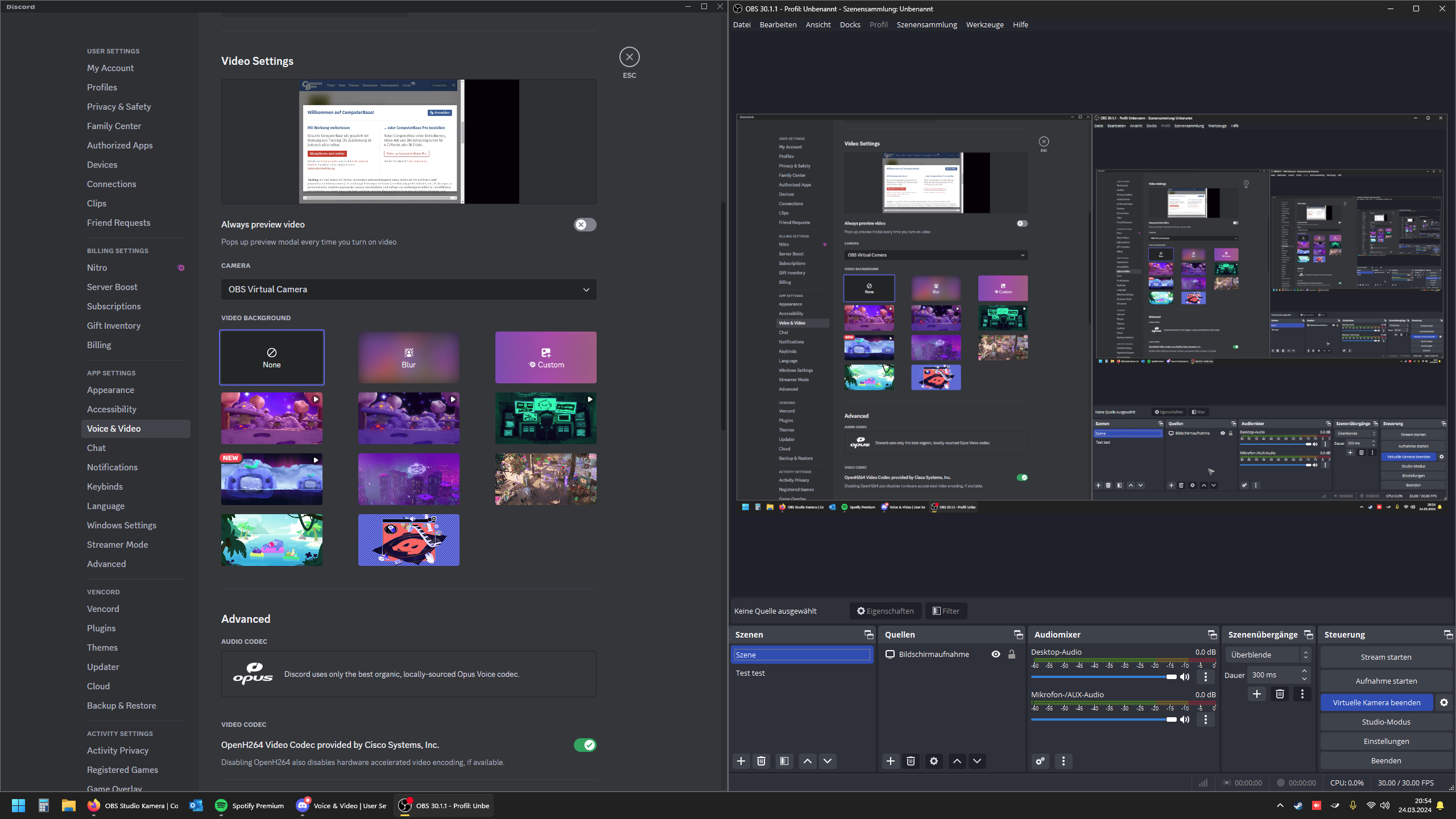 Möchte das die Video Kamera vom Laptop ein Video anzeigt was ich abspiele im Stream aber es funktioniert nicht!!
