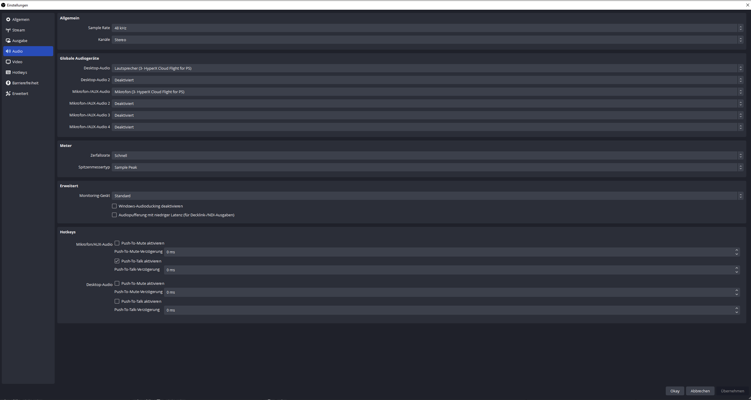 ich versuche ein Onlinespiel mit OBS aufzunehmen, was früher auch geklappt hat, jetzt aber nicht mehr geht. Problem: Er nimmt Bild und Ton auf, aber nicht mein Mikro. Ich habe schon zig Einstellungen ausprobiert und verstehe nicht das Problem. Vielleicht wisst ihr weiter. Anbei Fotos von den Einstellungen.
