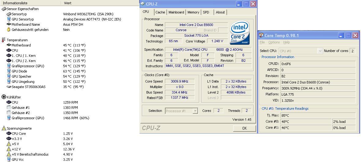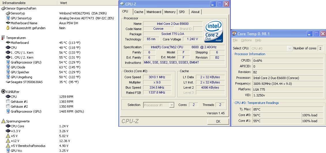 Hab meinen E6600 mit 334 FSB und 9x Multiplikator laufen. Die Temperaturen erscheinen mir trotzdem relativ hoch, dafür, dass mein Gehäuse: