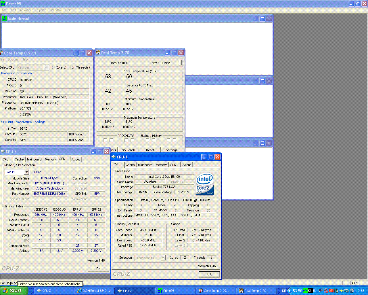 komischerweise ist ende der fahnenstange exakt bei der gleichen fsb-zahl wie mit dem alten speicher. dachte.... fsb 860 wäre zuviel für die alten 667er. aber... war wohl ne fehleinschätzung, ich greenhorn, ich.... <motz>