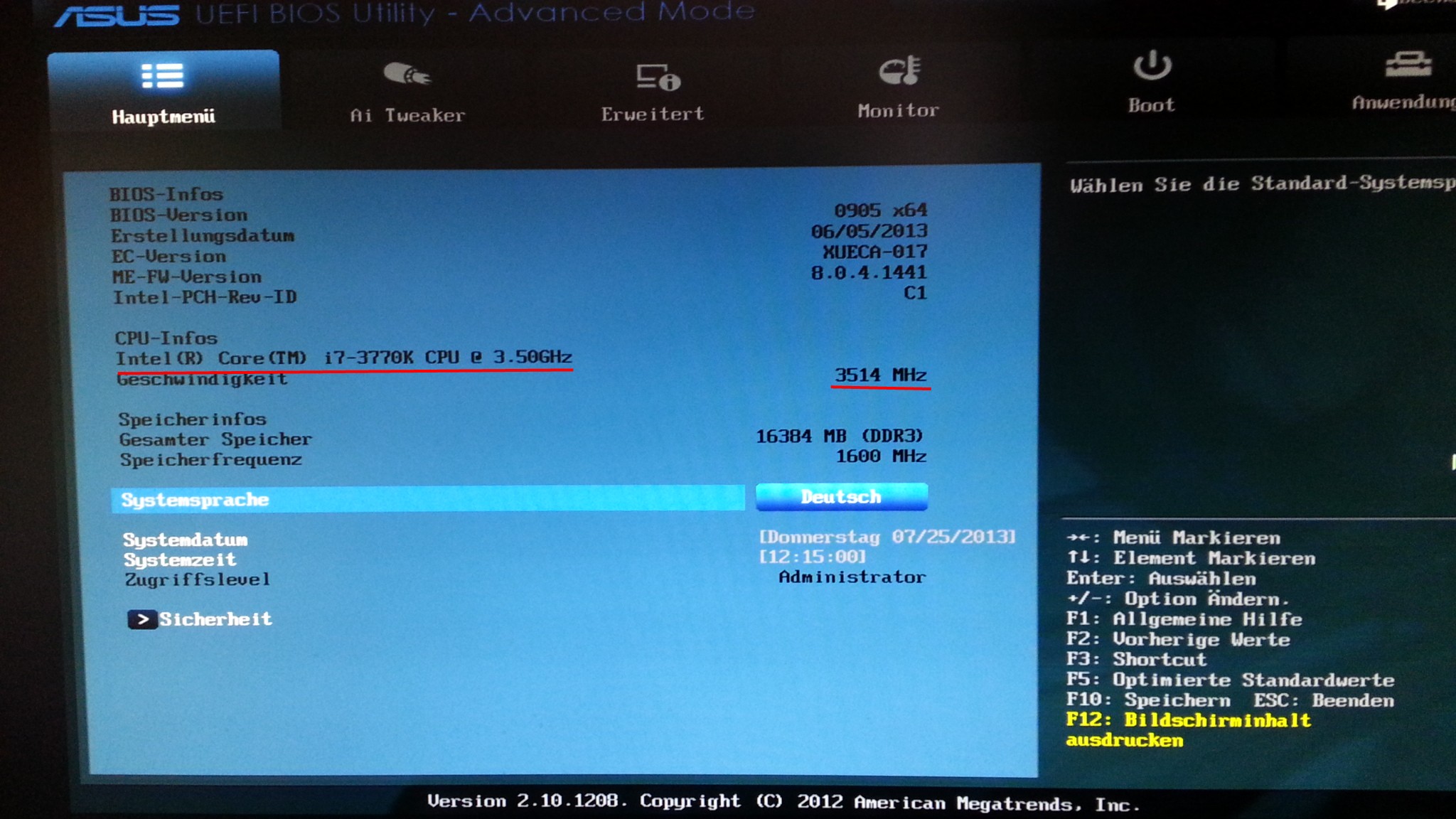 Mein PC mit aktuellem BIOS 0905: