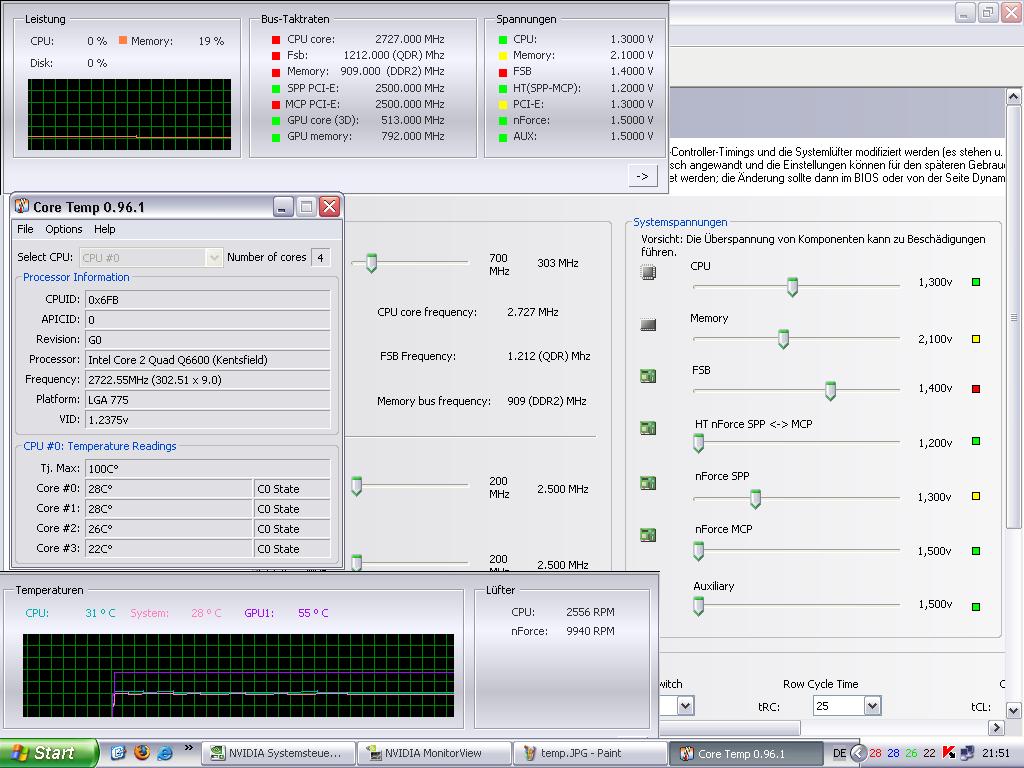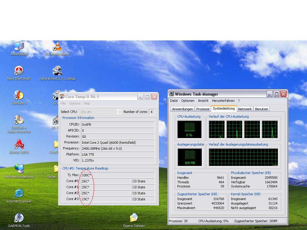 An übertakten mag ich grad garnicht mehr denken...hatte ihn zwar kurz auf 3ghz laufen...aber im primetest ging die Temperatur schnell auf 69°. Habe den PC sofort wieder runtergetaktet weil die Schmerzgrenze bei 71° liegt?