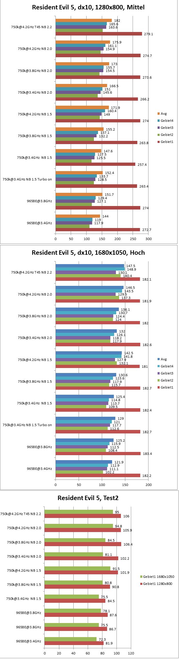 Leider habe ich keine Ahnung, wie ich solche Benchmarks wie oben mit normalen Spielen machen kann. Ich habe also einfach mal Fraps genommen und etwas auf die FPS geschaut. Ergebnis: Alle 3 Spiele liefen auf dem 750k deutlich flüssiger als auf dem Phenom965. Auch die Frames waren jeweils deutlich höher. Deutlich wird der Unterschied, wenn man den 750k übertaktet.