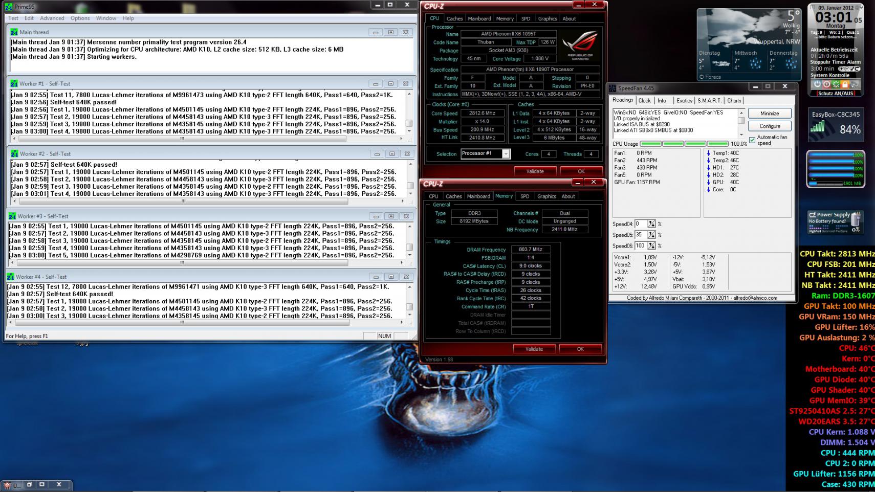Nachdem ich vor kurzem es endlich geschafft habe endgültig meinen Kingston RAM wie vom Herstelleraufkleber angegeben den auch auf 1066MHZ-Takt laufen lassen zu können, durch etwas mehr Saft auf der NB und den richtigen Latenzen im Bios manuell einstellen hab ich die CPU nun auch bis an die Grenze gebracht die meine Kühlung mitmacht.