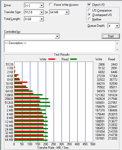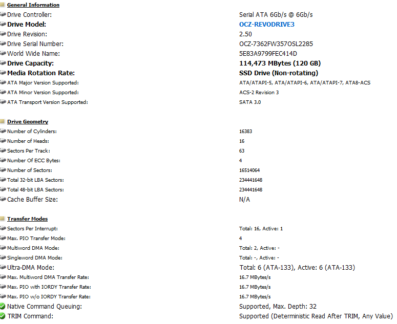 Mit der Zeit habe ich nun gemerkt, dass mein System irgendwie langsamer geworden ist und ständig Abstürze (freeze, kein BSOD) hatte. Zuerst hatte ich den RAM und die Grafikkarte in Fokus, habe dann aber einen Benchmark für meine PCIe SSD gemacht und war schockiert von dem Ergebnis. Sequentielles Lesen mit 215MB/s und Sequentielles Schreiben mit 182MB/s (durchgeführt mit AS SSD Benchmark v1.8.5636.37293). Einen weiteren Benchmark habe ich mit dem OCZ eigenen Tool SSD Utility (v2.1.2542) durchgeführt mit dem ungefähr gleichen Ergebnis.