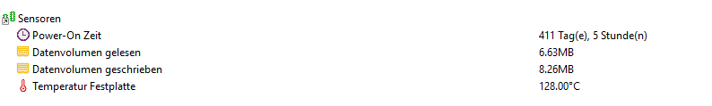 Kann mir jemand weiterhelfen ,meine Festplatte zeigt an das sie 128Grad warm sein soll .Habe Geheuse aufgemacht ist absolut kalt die Platte. Kann sich eine SSD überhaupt so erwärmen?