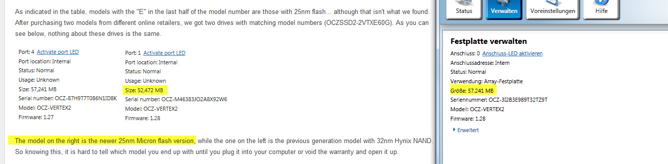 Adem67 schrieb:Fakt ist, dass OCZ nur jene SSD tauscht, die aufgrund der neuen Struktur nicht mehr die geworbene Kapazität aufweisen kann.