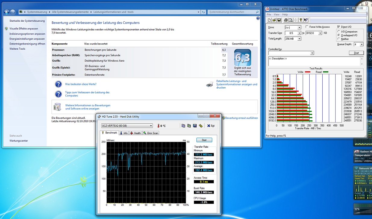 habe gerade die OCZ Vertex 2 Extended mit 60GB erhalten und Windows im AHCI-Modus installiert. Jetzt habe ich mal ein paar Benchmarks laufen lassen, weiß aber nicht, ob die Werte passen. Dachte, sie müsste ein bisschen schneller sein. Was denkt ihr?