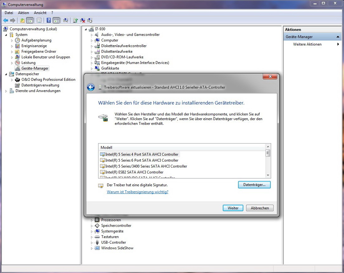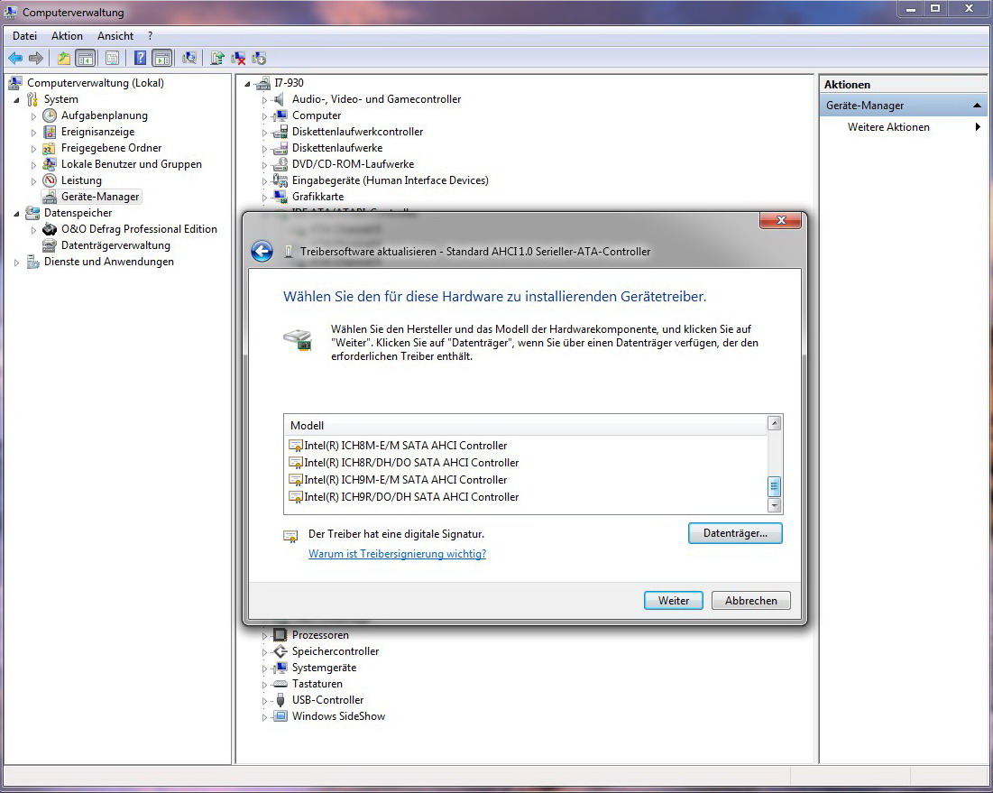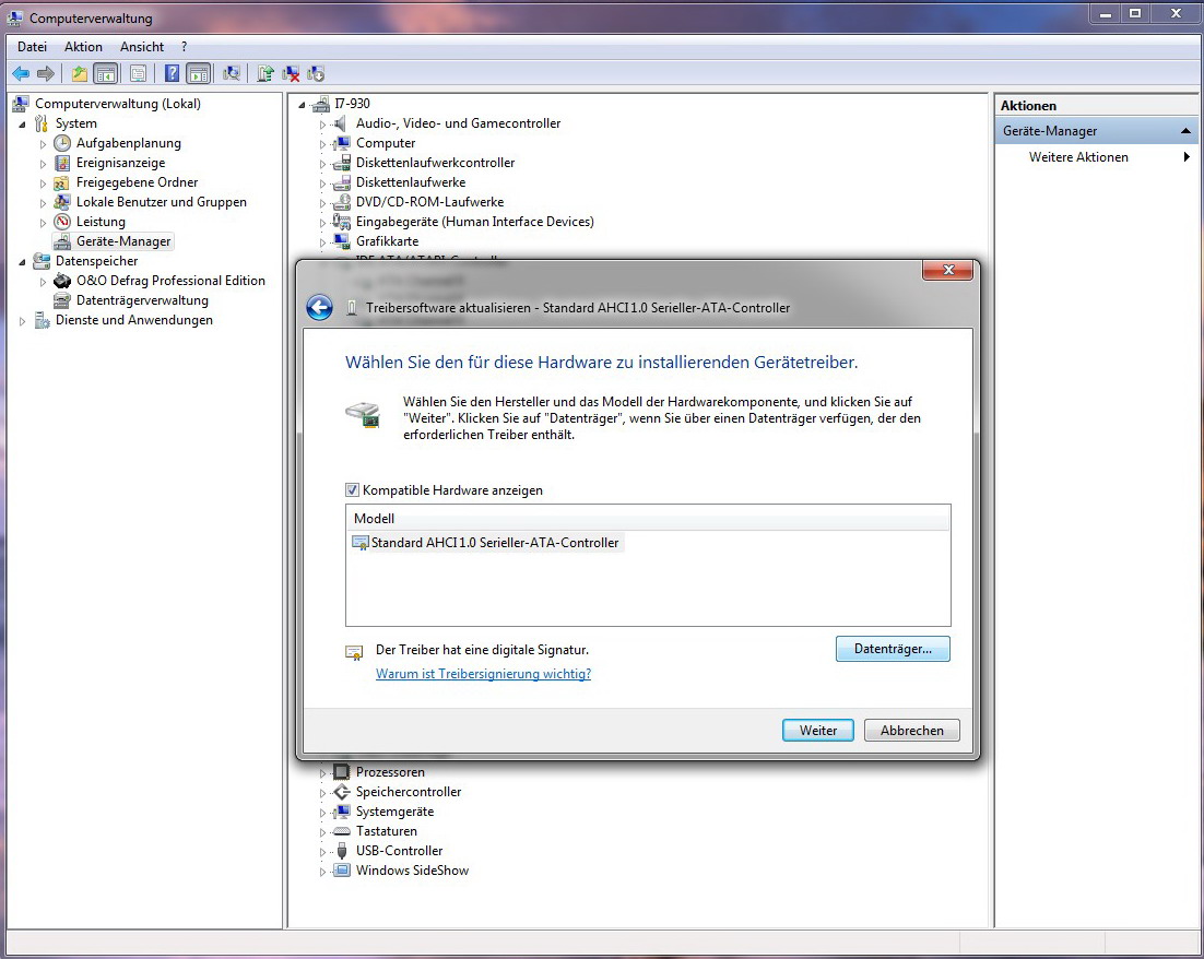 Was stört dich denn an der Anzeige des msahci? Das heißt doch nur, dass der Microsoft-Treiber verwendet wird.
