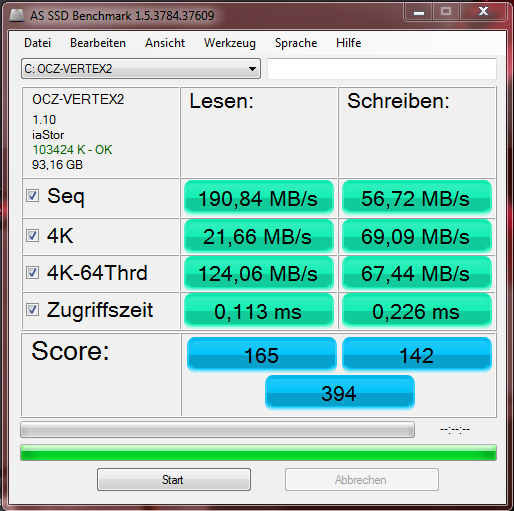Das liegt daran, dass ich seit dem Test der Postville im letzten Jahr keine mehr hier hatte. Der AS SSD Benchmark wurde als einziger später in den Testparcour aufgenommen. Deshalb findet man "nur" die ATTO- und Realergebnisse.