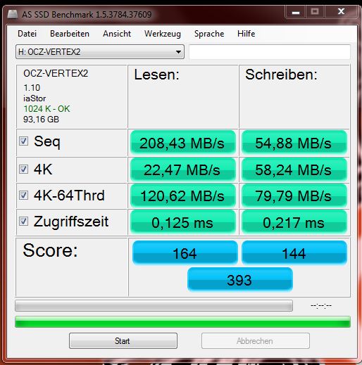 Ja das weiß ich.Also ich benche sie nun nicht alle 2 Minuten um sie möglichst schlecht dastehen zu lassen.Übrigens benötigt der Recovery-Algorithmus bzw. GC auf der SF-SSD bedeutend mehr Zeit als bei anderen SSDs.Benchmarks sind dafür pures Gift und können den Prozess immer wieder zurückwerfen.