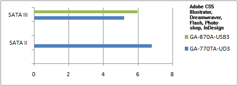mit Dreamweaver, Illustator, InDesign, Flash und Photoshop jeweils @Version: CS5 (Arithmetisches Mittel @ 6 Messungen, per Batch-Datei, in Sek.)