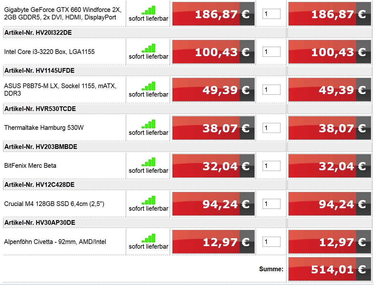 Netzteil müsste neu, Rest kommt (erst einmal) aus meinem alten Kasten.
