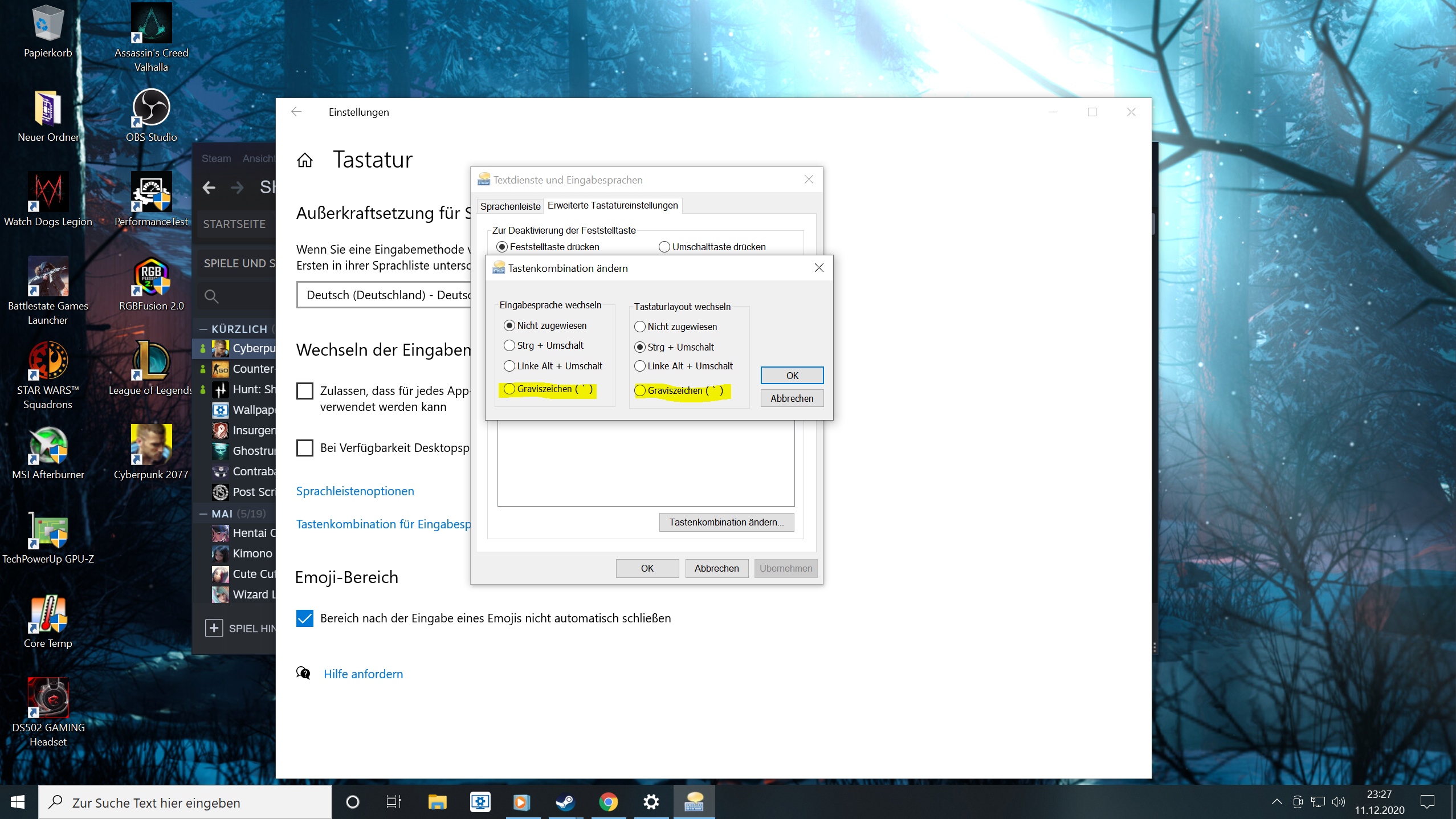 Beim zocken hat sich immer die Tastatur in ENG geändert das hat genervert also hab ich das umgestellt zu folge das jetzt irgendiwe Ö nicht mehr geht.....