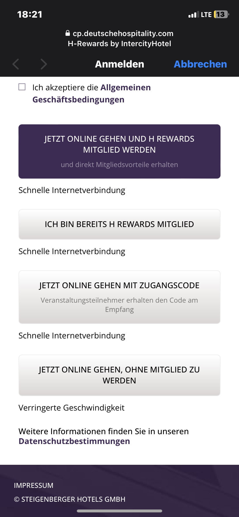 Ich bin die nächsten Tage aus beruflichen Gründen in einem Hotel untergebracht, damit mir nicht allzu langweilig ist, habe ich meinen PC mitgenommen, alles schön und gut… Aufgebaut und mit dem öffentlichen Hotel - WLAN verbunden, auf die Website zum AGBS akzeptieren weitergeleitet worden und schnell angemeldet, funktioniert alles. Nur habe ich übersehen, dass ich mich mit einem begrenzten Login (5Mbit) angemeldet habe. Nun möchte ich mich nochmal mit dem "offenen" login anmelden, jedoch komme ich nicht mehr auf die oben genannte Website, auf der ich die Geschwindigkeit auswählen kann (Bilder anbei).