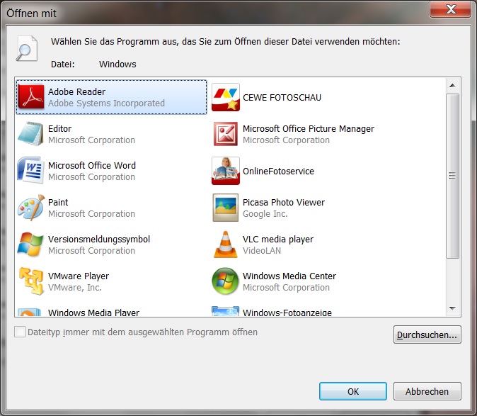 nach jedem Windows Start erhalte ich die "Öffnen mit " Aufforderung mehrmals. Und als Datei wird Windows angegeben. Habe schon einiges probiert, bis zur Reg Bereinigung, jedoch schaffe ich es nicht hier dahinter zu steigen, warum die Aufforderung kommt bzw. wie ich diese weg bekomme. Vielleicht hat wer eine Idee?