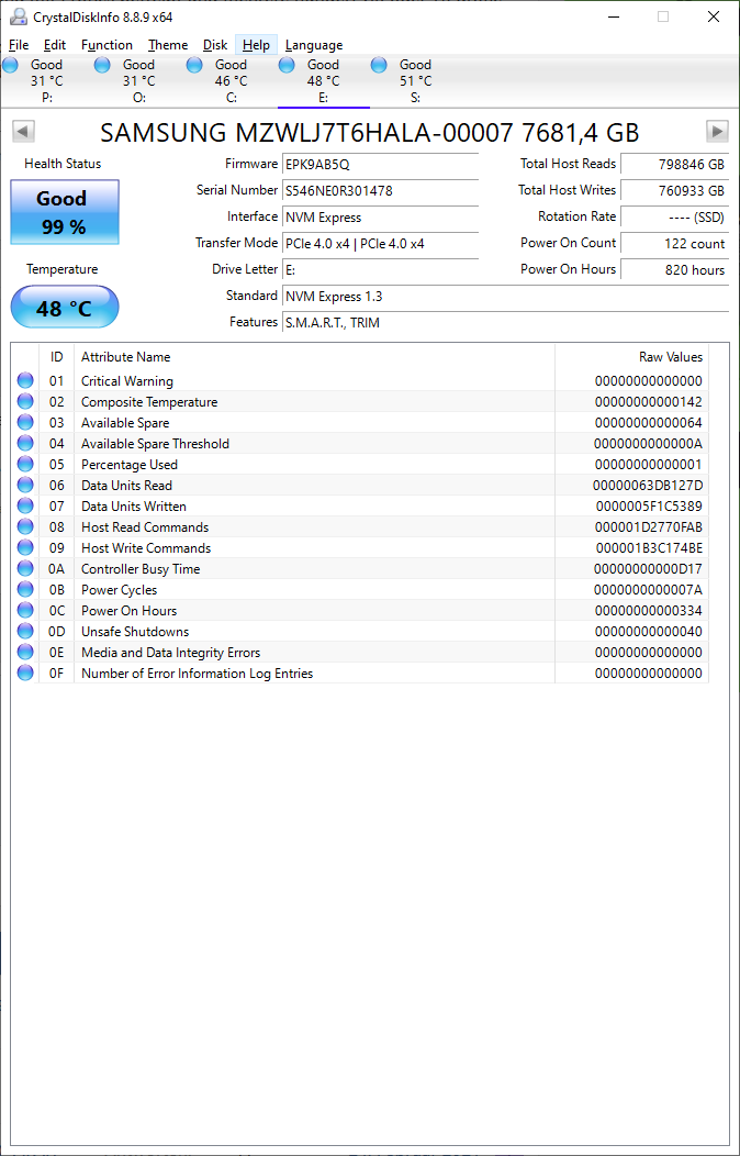 Da kann ich mit meiner Samsung Steam-SSD nicht mithalten. xD Ich dachte, ich schreibe schon viel... Eine Micron Enterprise-SSD hab ich noch als schnelle Backup-Lösung dahinter hängen sowie dahinter eine HDD. Bevor dann ein NAS+Backup folgt...