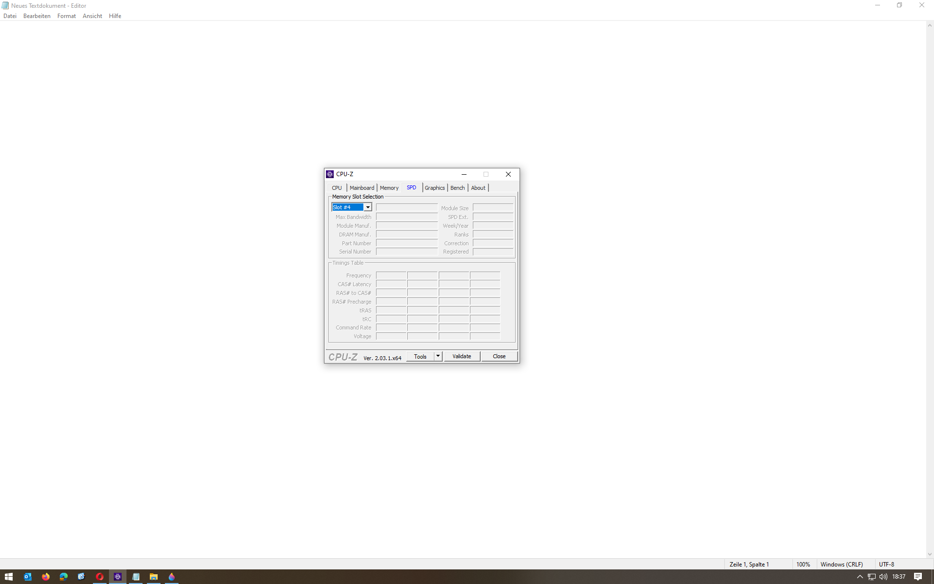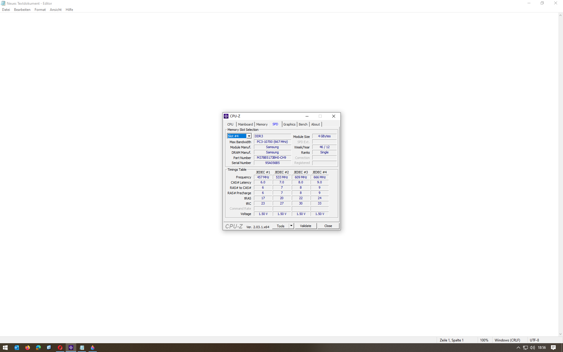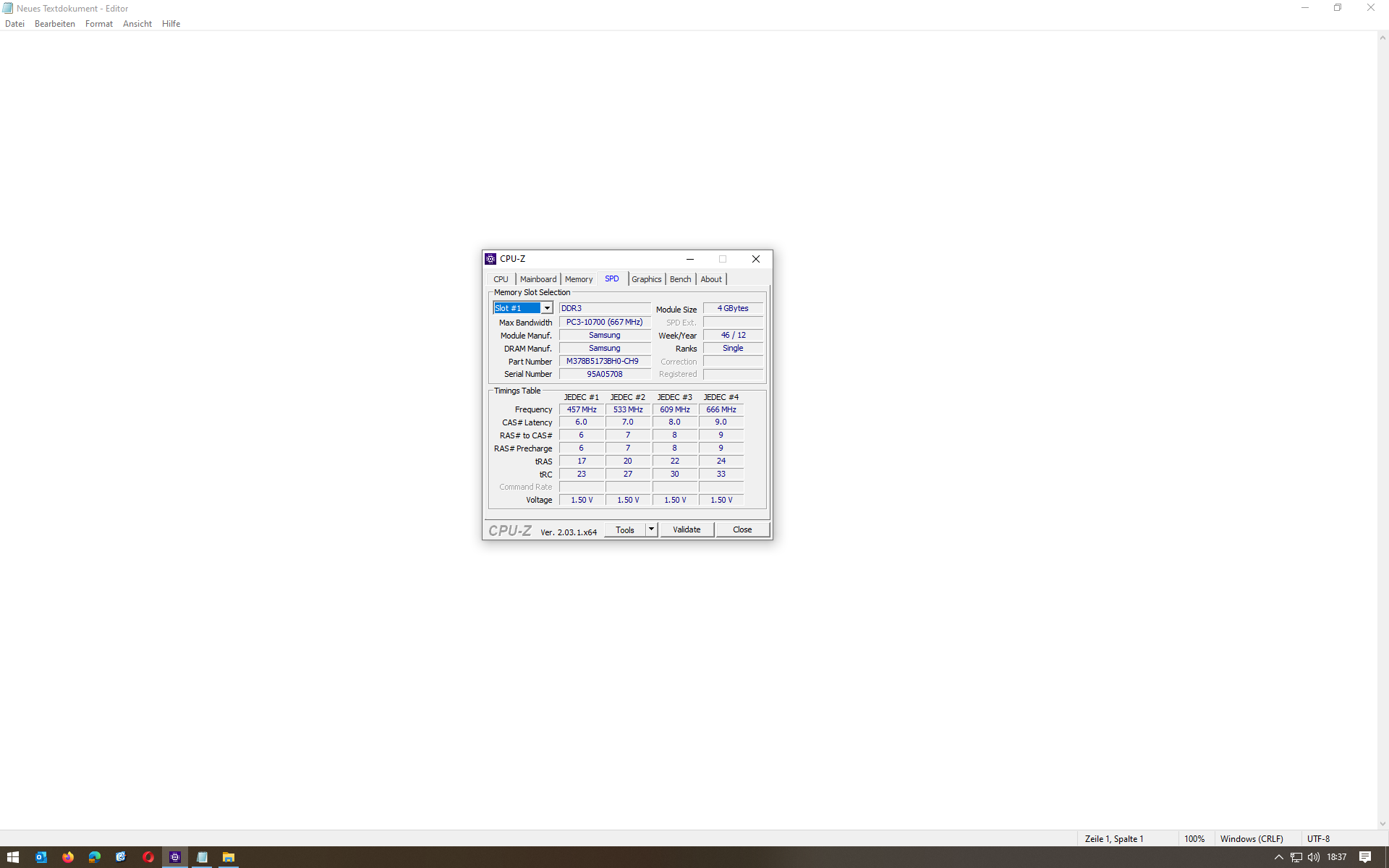 Weiter stand da: Press F1 to continue. Also habe ich F1 gedrückt und Windows ist ganz normal hochgefahren. Doch statt 16 RAM zeigt mir der Taskmanager nur noch 8 GB RAM an. Ich habe dann mit CPU-Z ein paar Screenshots gemacht. Wie ihr auf dem Screenshot "Unbenannt 3" sieht, liegt es wohl am RAM-Riegel Slot 4, da hier CPU-Z nichts anzeigt. Auch sieht man deutliche Unterschiede unter "Timing Tables", besonders JEDEC #1 mit 457 MHz <-> JEDEC #4 mit 666 MHz.