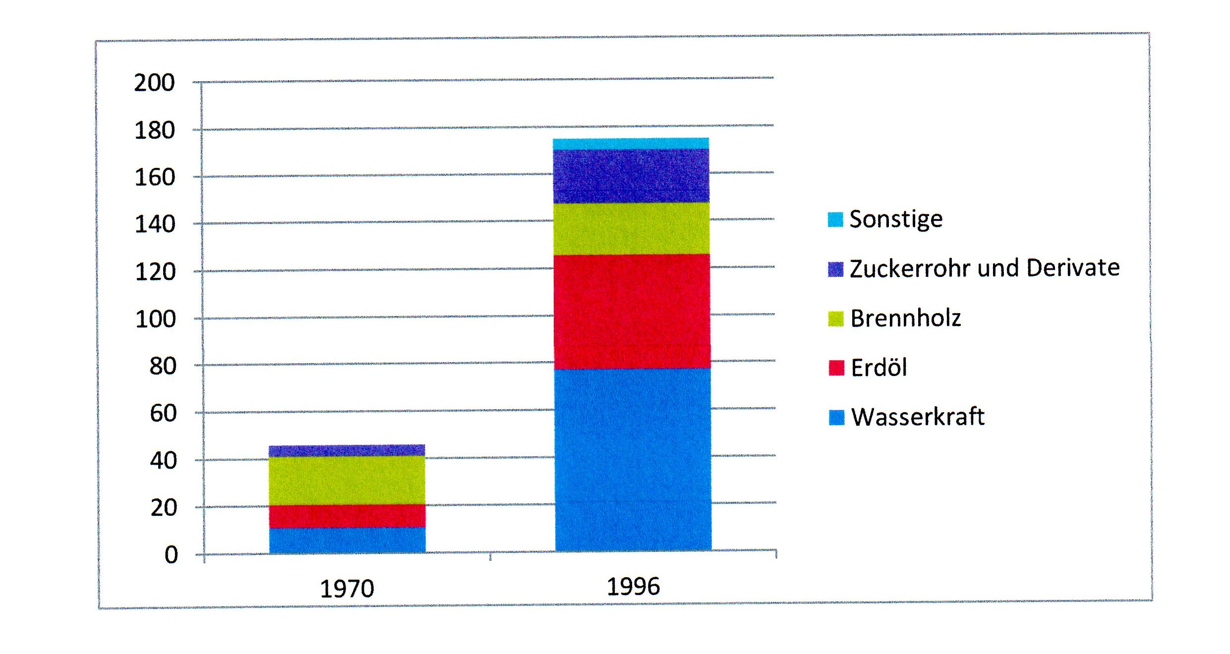 Aber dann weiß ich nicht, wo du Prozent haben willst. Für das Diagramm in Bild #2 müsstest du die Prozent ja einfach zurückrechnen (also bspw. 0,01*46*23,4 für Wasserkraft 1970)