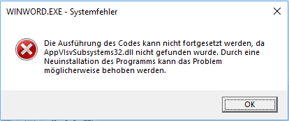 Ich finde nirgendwo eine Lösung zu diesem Problem und kann mir auch nicht erklären, warum Office zunächst funktioniert, dann aber plötzlich nicht mehr.