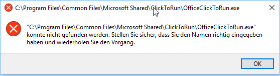 Wenn die Installation abgeschlossen ist, funktioniert alles, wie es soll. Aber wenn ich einige Minuten später irgendein Office-Programm öffnen will, sehe ich nur diese Fehlermeldung: