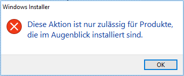 Beim Deinstallieren der MSI-Pakete tritt ein Fehler auf: