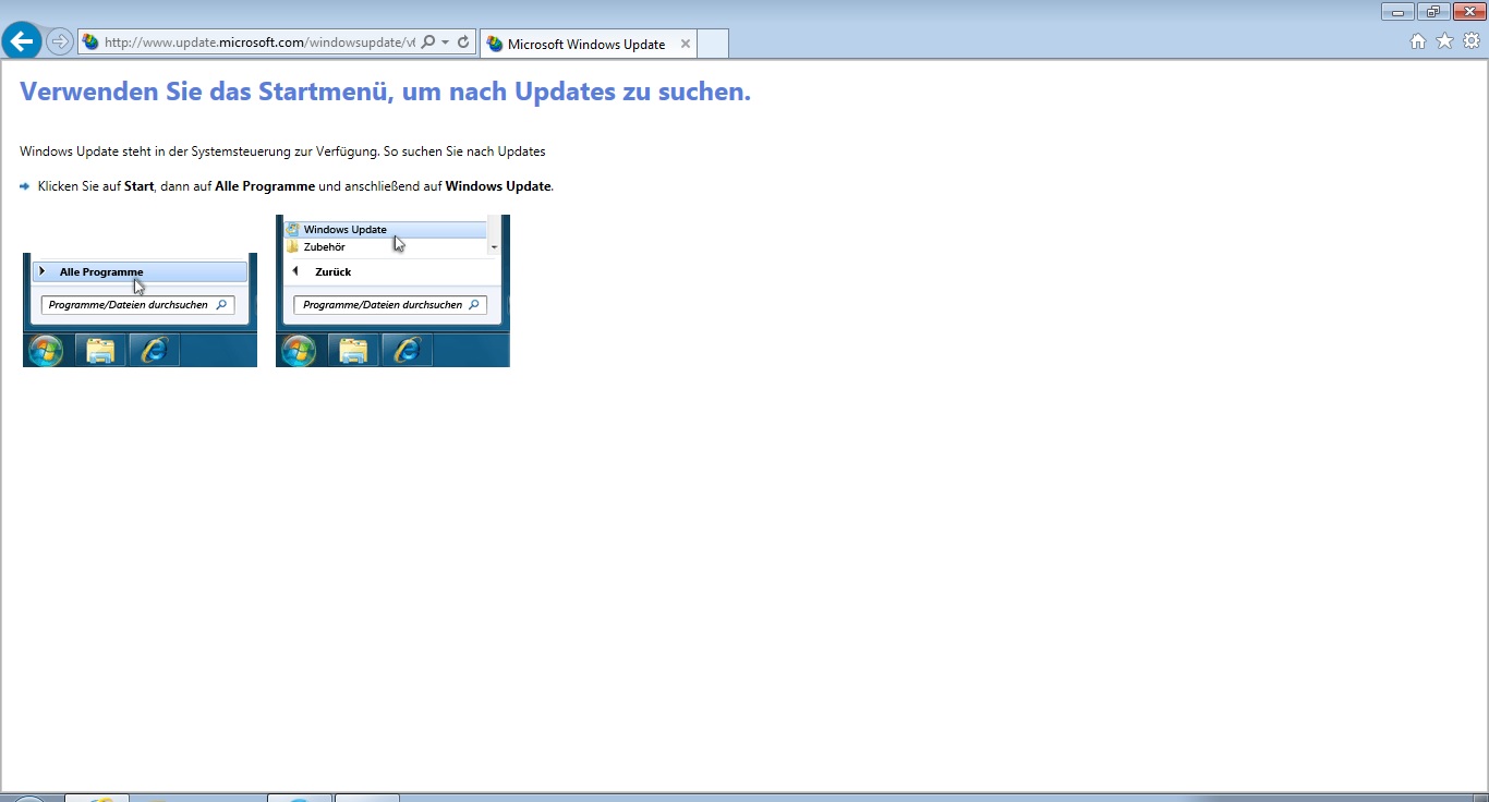 Wenn ich auf den Schriftzug "Rufen sie Updates für....." klicke, erhalte ich wieder die Bilder im Browser, wie ich das Windows Update starte..... da kann ich dann auch nichts klicken oder so.....