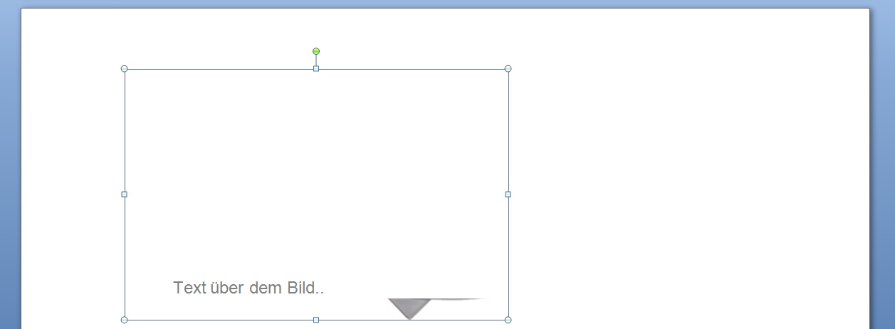 ich habe ein seltsames Problem, das sich seltsamerweise über alle mit Office 2007 infizierten PCs hier zu Hause nicht ändert. Eingefügte Bilder gehen "unsichtbar" in den Text hinein, angezeigt wird jeweils nur eine Spalte von etwa 15px am unteren Rand der Bilder. Ziehe ich das Bild so klein, dass es nur 15px hoch ist, kann ich es ganz sehen.