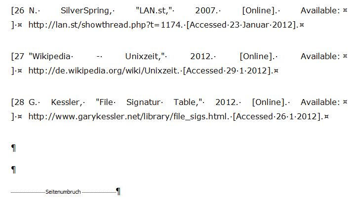Klapp auch soweit, nur verhunzt Office mir die Anzeige ab Quelle [10] die eckige Klammer rutscht ne Zeile Tiefer, vermutlich wegen dem Leerzeichen.