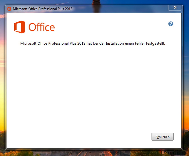 Microsoft Office 2013 Professional Plus hat bei der Installation einen Fehler festgestellt