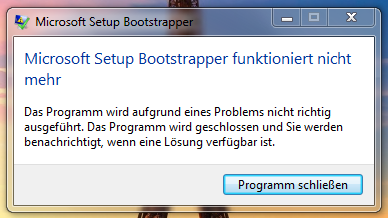 Und wenn ich den Setup schließe kommt dann ein Problem: Microsoft Setup Bootstrapper funktioniert nicht mehr