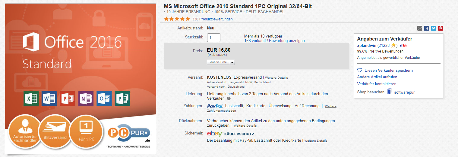 Auf meinem Rechner habe ich Office 2016 Standard installiert und wollte schauen welche Version die neueste ist.