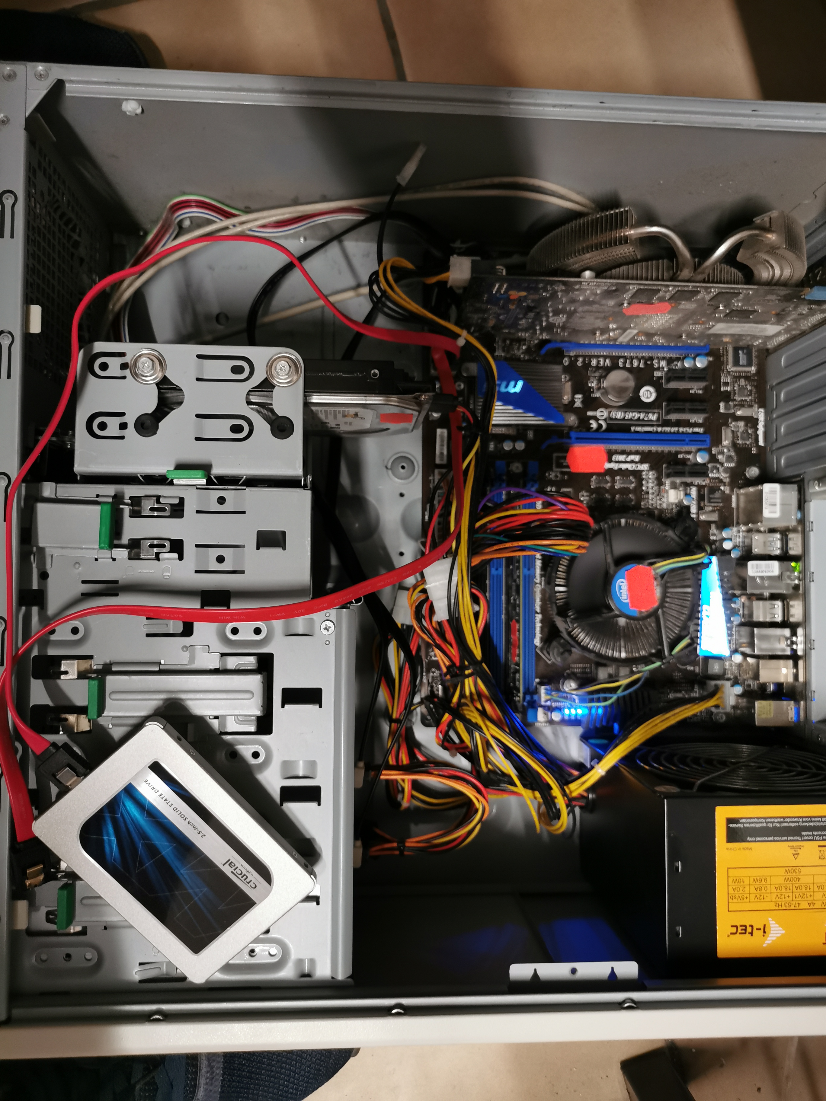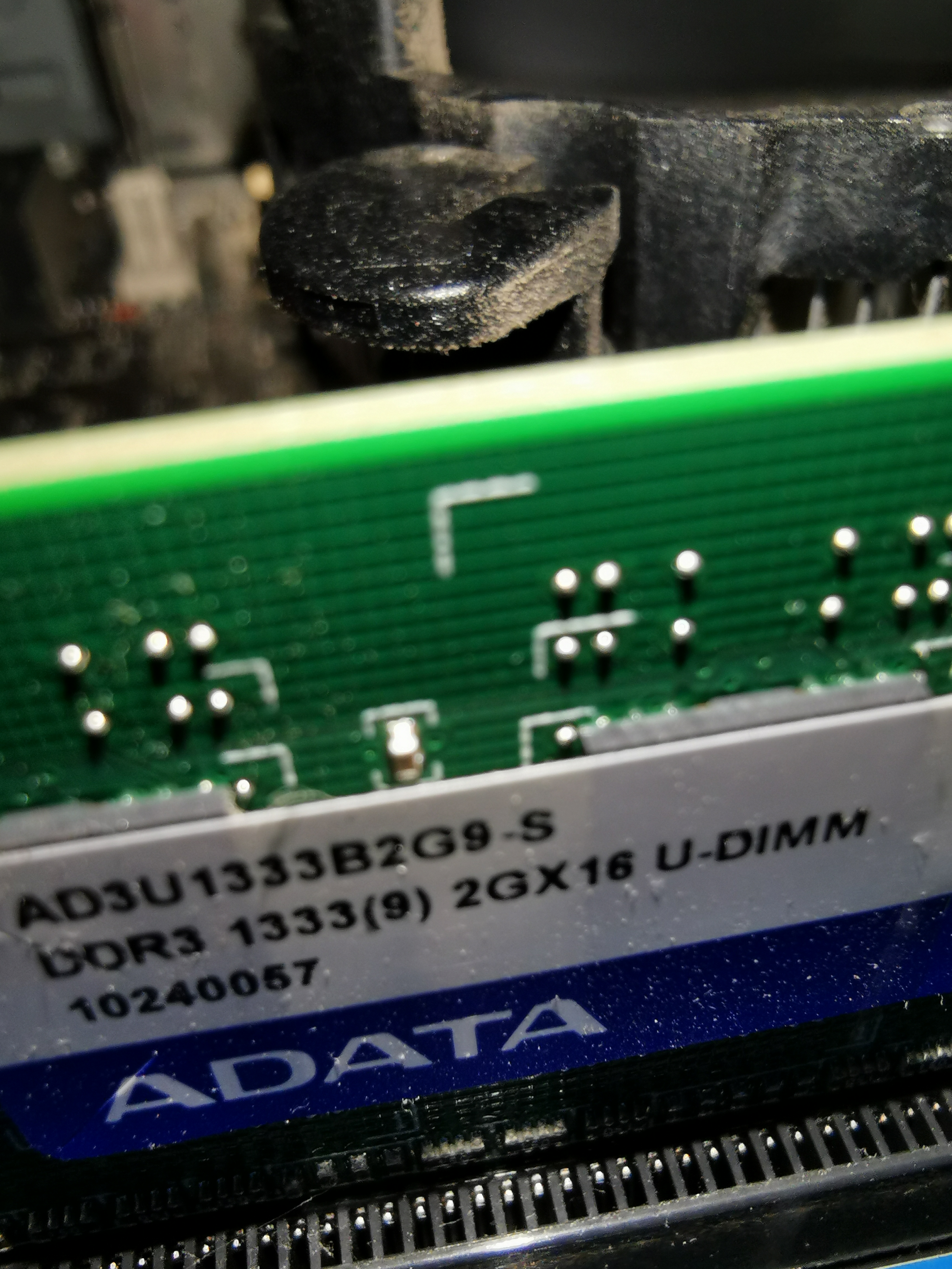 Ich habe nicht alle Komponenten im Kopf. Es ist ein alter Rechner von 2010 aus seiner Firma. Als Mainboard fungiert das MSI P67a-g45 und es ist ein RAM Riegel verbaut.