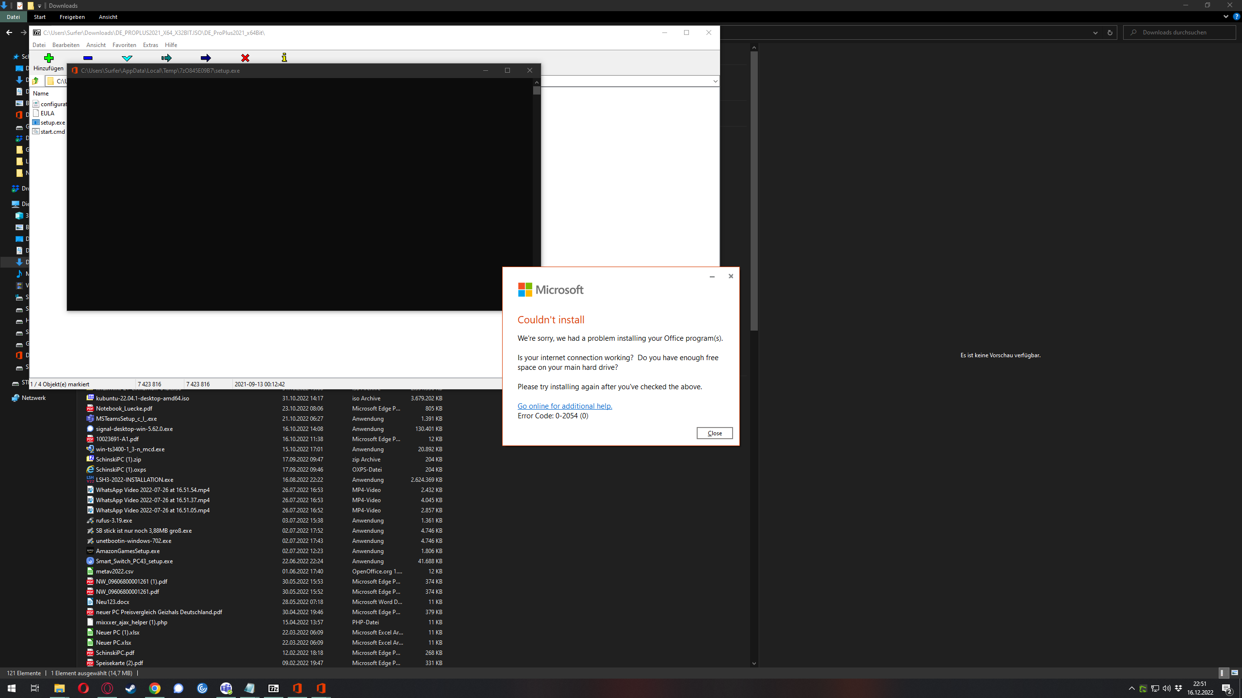Die Installation startet mit dem Fehlercode " 0-2054 (0)"