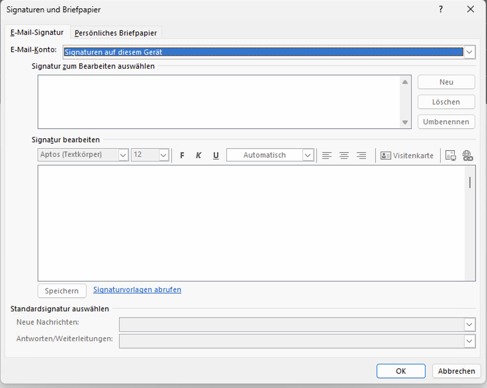 Wähle ich bei "E-Mail Konto" das Exchange Postfach aus, kann ich eine Signatur erstellen, allerdings wird diese dann auf allen PCs angezeigt.
