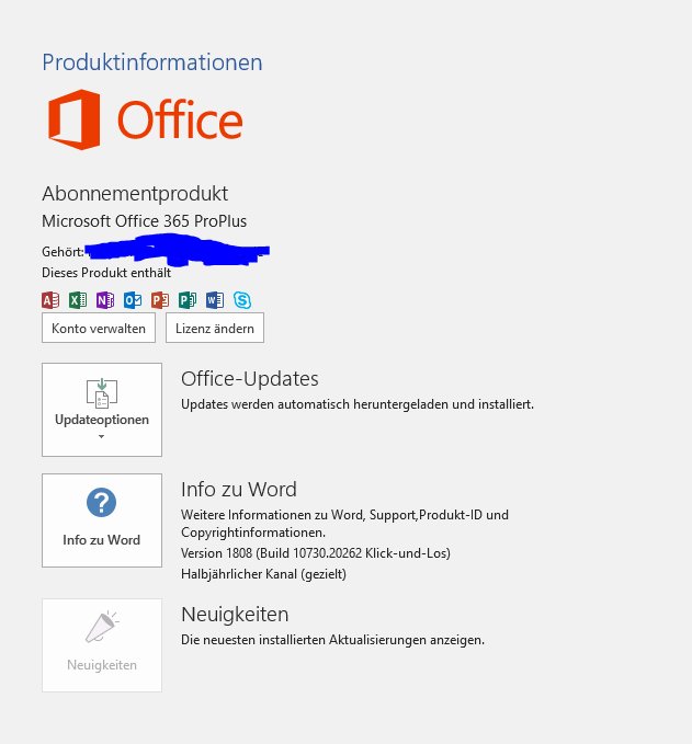 Welche Build Nummer, siehst du z.B. in Word unter Datei Konto.