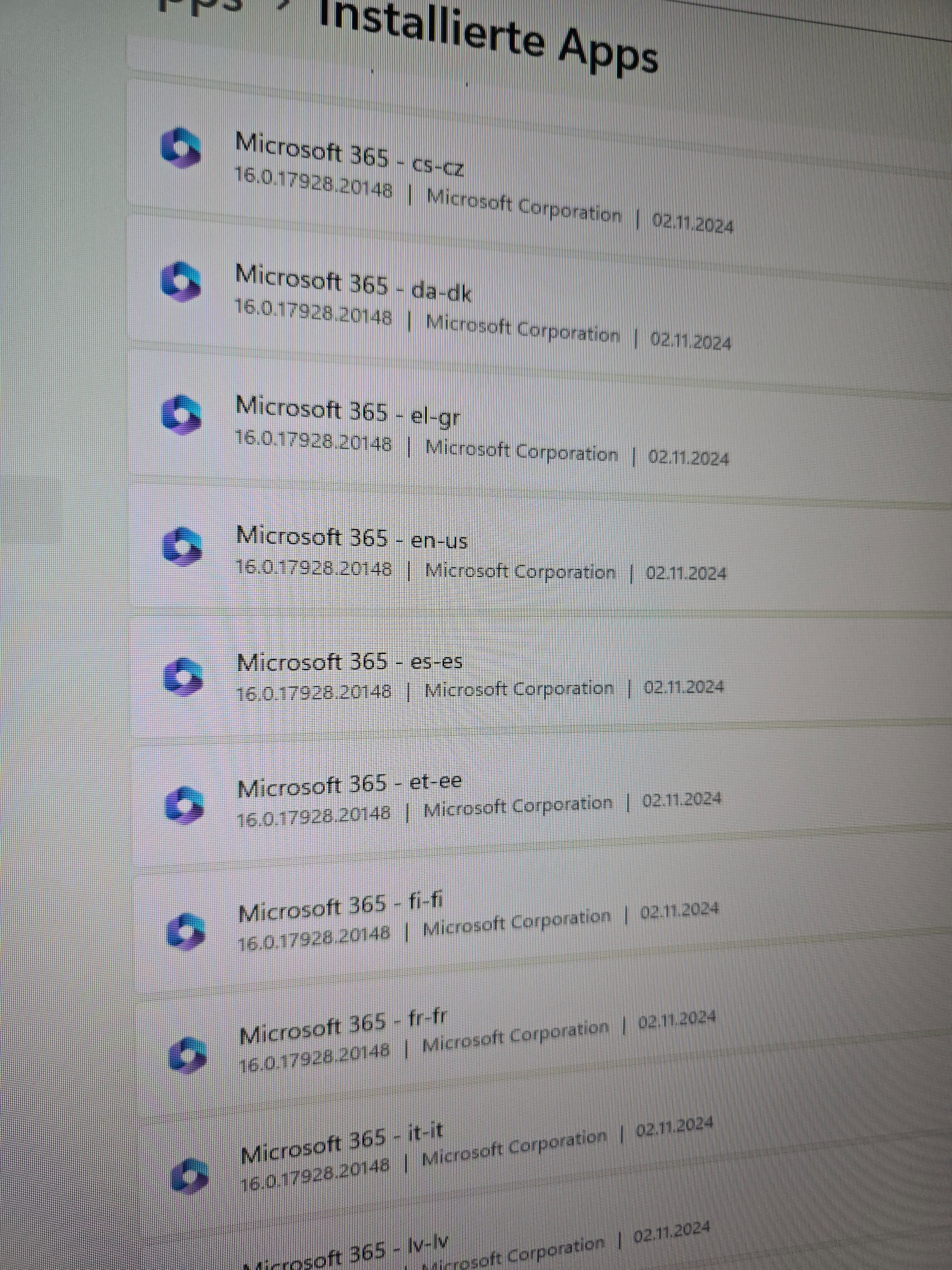 Guten Abend zusammen. Ich habe mir einen MSI Komplett PC gekauft und dort sind in der Systemsteuerung zig verschiedene Sprachpakete von Office 365 oder OneNote installiert - siehe Foto.