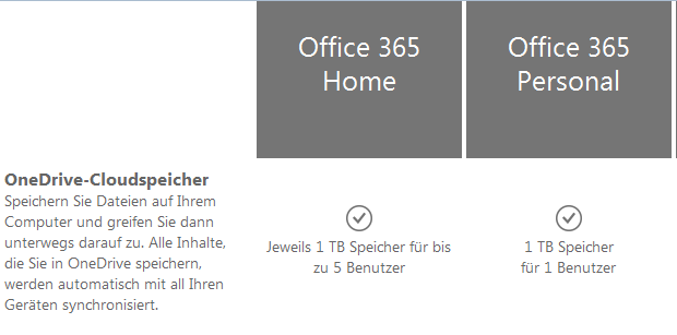 ist bei jedem Office 365 Abo 1 TB OneDrive speicher (pro Benutzer) dabei?