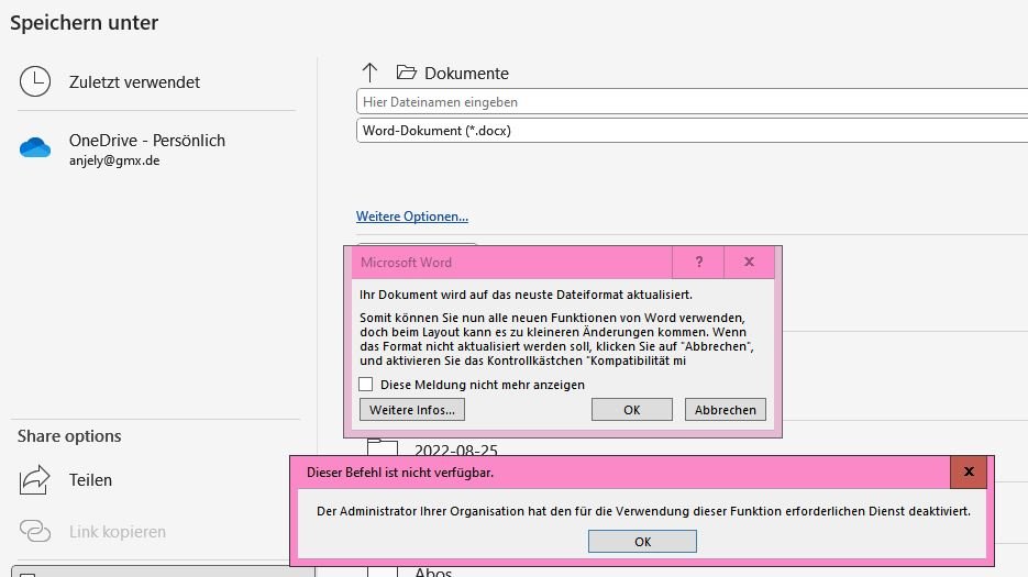 Wenn ich in OFFICE 365 WORD die Hilfefunktion aufrufe, bekommen ich die Mitteilungen