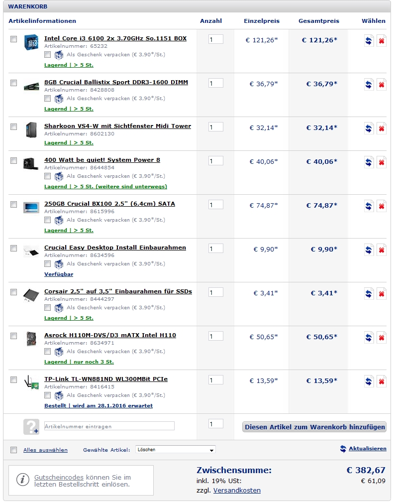 Später kann man den i3 bestimmt noch gegen was stärkeres austauschen - wenn nötig.